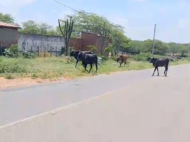 Neste domingo, um vídeo que circulou nas redes sociais chamou a atenção para uma situação de risco constante na PB-264, em Monteiro, Cariri paraibano. As imagens mostram animais de grande porte soltos na rodovia, nas proximidades do parque de vaquejada de Paxita, provocando revolta e preocupação entre os motoristas.