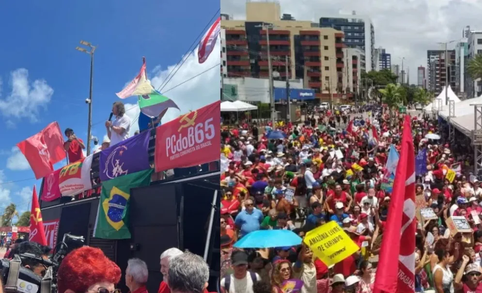 Políticos, sindicatos, associações e outras instituições realizaram, na manhã deste domingo (14), em João Pessoa, um ato contra a PL da Dosimetria que prevê a redução da penas dos condenados por tentativa de golpe de Estado no Brasil. O ato contou com a presença de políticos ligados de esquerda ou de partidos aliados ao presidente Lula, como o MDB. Em diversos momentos, manifestantes criticaram o posicionamento a favor do projeto do paraibano Hugo Motta, presidente da Câmara.