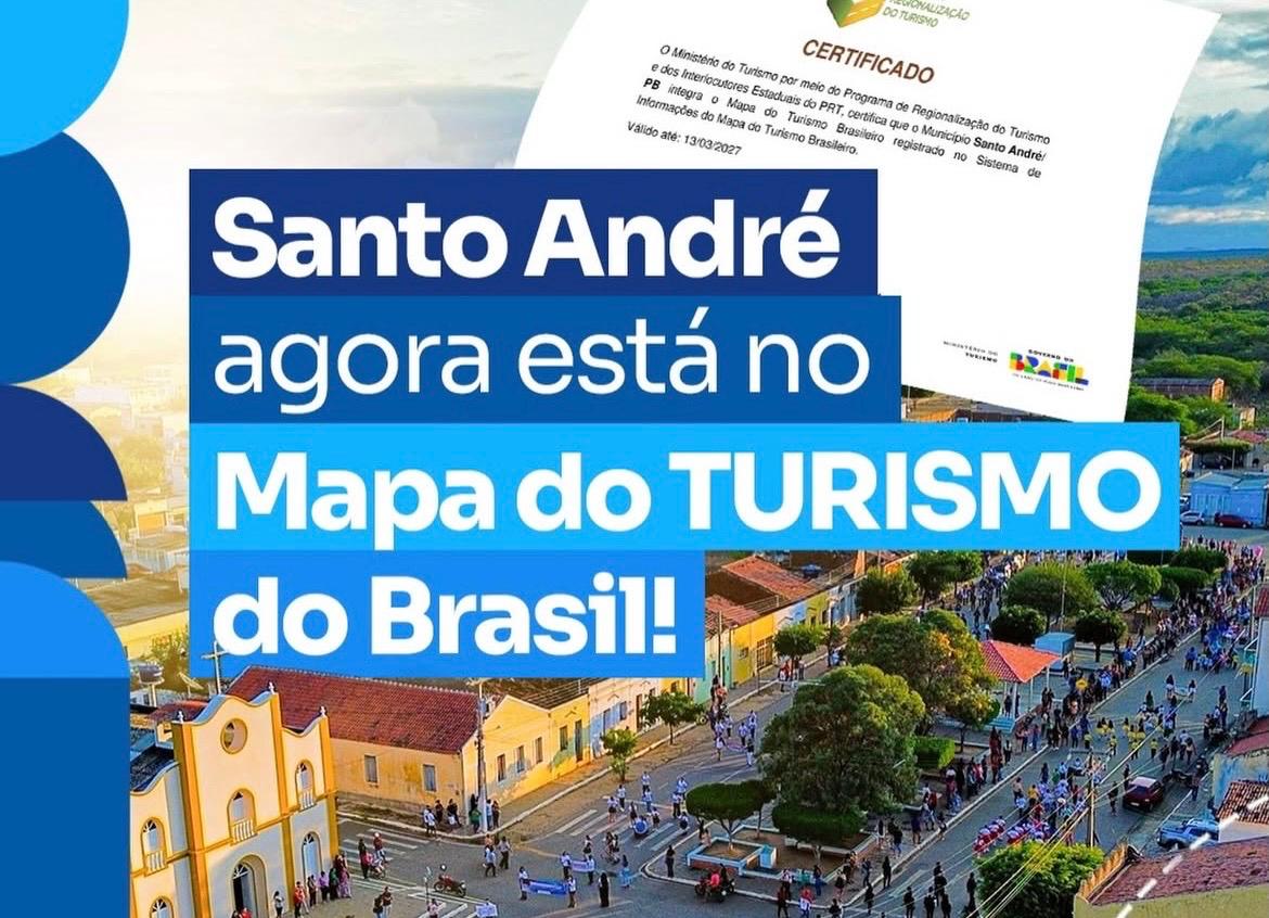 O município de Santo André, no Cariri paraibano, agora faz parte do Mapa do Turismo Brasileiro, instrumento do Ministério do Turismo que reúne cidades com potencial turístico e que desenvolvem políticas voltadas para o fortalecimento do setor.