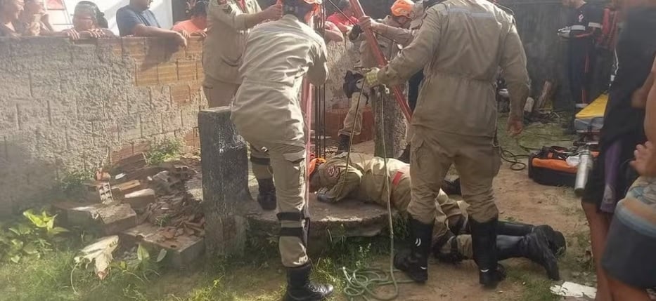 A operação de resgate foi realizada por um bombeiro militar, que utilizou um sistema de tripé para descida vertical. Ao alcançar o menino, o profissional usou o chamado “fraldão” — equipamento específico para içamento seguro em áreas de difícil acesso — garantindo a retirada segura da criança do interior do poço.