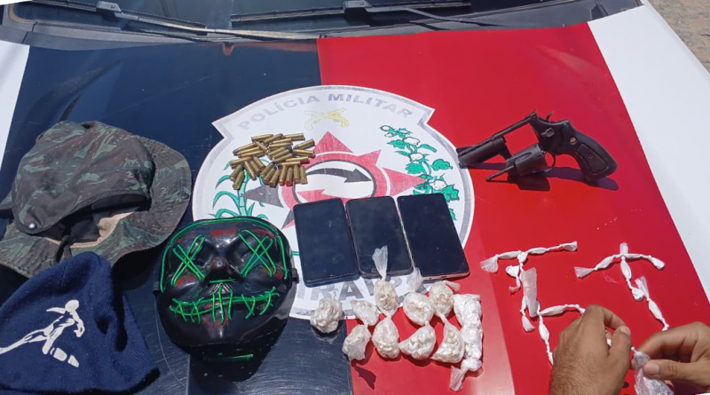 As equipes policiais realizavam rondas na cidade, quando visualizaram dois suspeitos em frente a uma residência. A dupla, ao perceber a aproximação policial, tentou fugir para dentro da residência, porém foram alcançados na porta do imóvel. Na abordagem, foi encontrado com um dos homens um revólver, calibre .38, enquanto com o outro foram localizadas 10 pedras de crack e 10 trouxas de cocaína. Na residência, que servia como ponto de comércio de drogas, foram encontrados mais entorpecentes, além de munições calibre .38.