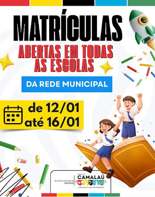 De acordo com o comunicado, o período de matrículas acontece entre os dias 12 e 16 de janeiro. Durante esse prazo, pais e responsáveis devem procurar a unidade escolar mais próxima de sua residência ou a Secretaria Municipal de Educação para garantir a vaga dos alunos.