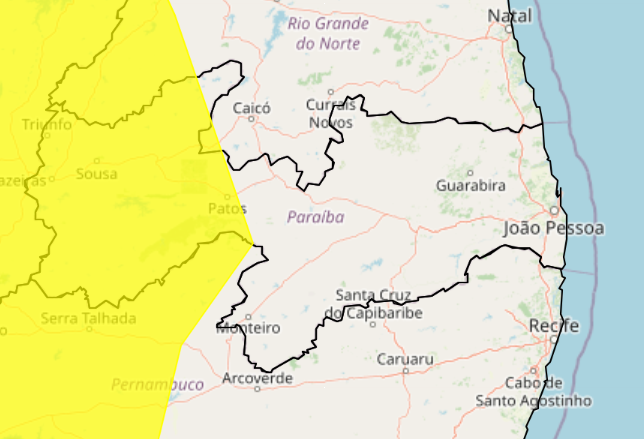 O alerta de Perigo Potencial de chuvas intensas divulgado pelo Instituto Nacional de Meteorologia (INMET) foi ampliado neste domingo (22) para 81 municípios do Sertão da Paraíba. O novo aviso começou neste domingo (22), às 10h, e vai até a meia-noite de segunda-feira (23).